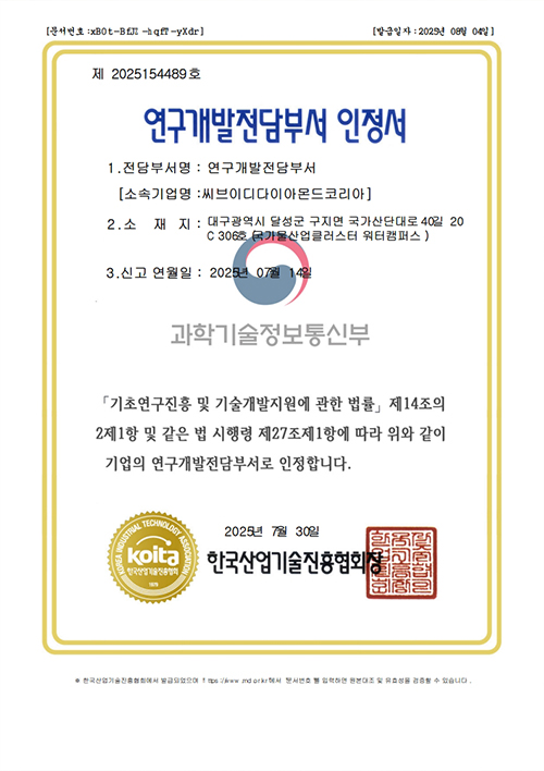CDK는 CVD 다이아몬드 합성기술을 연구하며, 이를 기반으로 다이아몬드의 산업화 가능성을 확대하는 데 주력하고 있습니다.